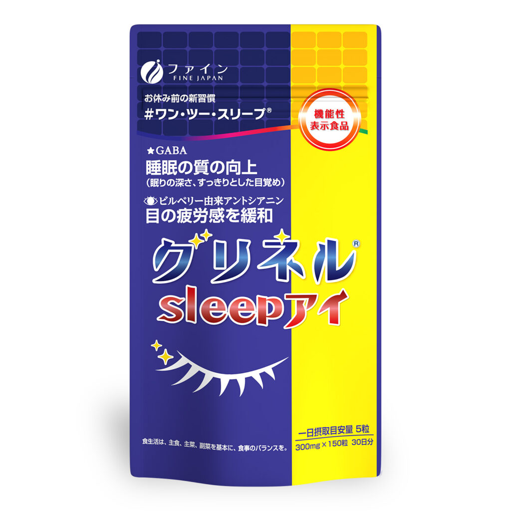 ファインでは2022年より、悩みの尽きない現代人をサポートする商品として、「グリネル®sleepアイ」を開発・販売しています。