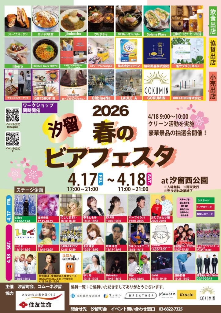 4月17日(金)~18日(土)に汐留西公園にて開催される「汐留春のビアフェスタ」に協賛します。